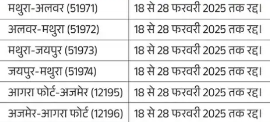राजस्थान से कैंसिल होने वाले ट्रेनों की लिस्ट