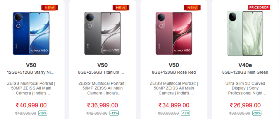 आखिरी में अगर इसके कीमत की बात करने से पहले VIVO के V Series में और कई से दमदार स्मार्टफोन है जिसके बारे में आपको जान लेनी चाहिए निचे एक तस्वीर हमने लगाईं है जिनमें कुछ विवो के वी सीरिज के फोन के नाम एवं प्राइस तय किये गए है.